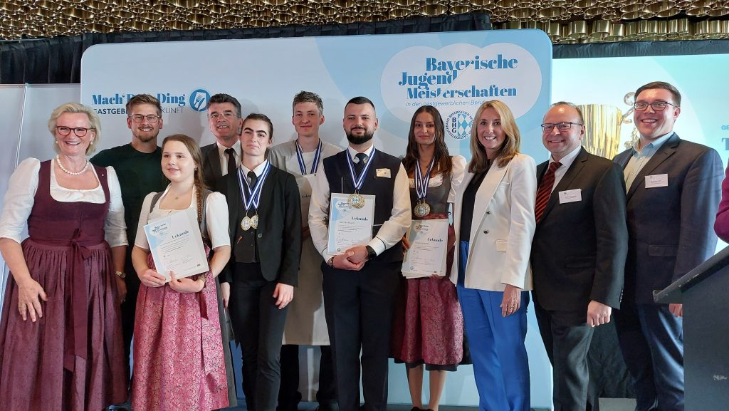Am 13. und 14.Mai 2025 traten 12 Teams aus Köch*innen, Hotelfachleuten, Fachkräften für Restaurant und Veranstaltungsgastronomie und Kaufleute für Hotelmanagement gegeneinander an, um den Wettbewerb des Hotel- und Gaststättenverbands zu bestreiten. Die Teams kamen aus Bad Wörishofen, Cham, Garmisch-Partenkirchen, Immenstadt, Landshut, Mindelheim, Nürnberg, Passau, Pegnitz, Wiesau, Viechtach und unser Team aus München.